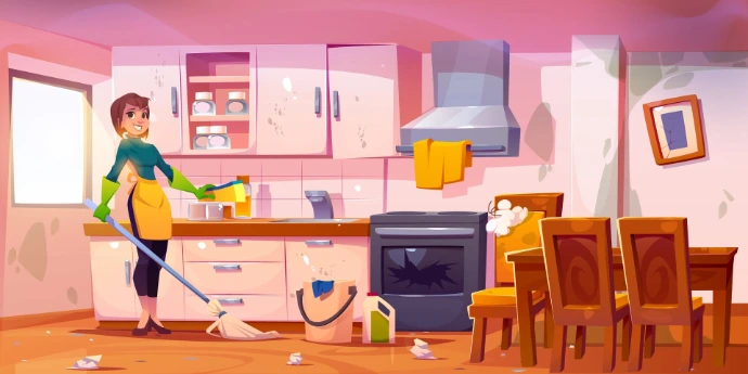 Deep cleaning of cooking zones, cabinets, and high-use surfaces.