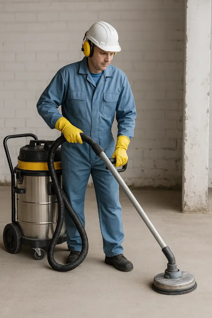 We clean factory floors, walls, and ceilings using modern tools and high-pressure systems for effective dust and residue removal.